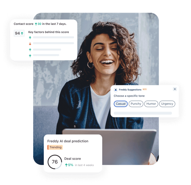 Get more done in less time with Freddy, your always-available AI assistant. Freddy helps you find potential customers, create personalized emails, and provides insights to help you close deals faster.